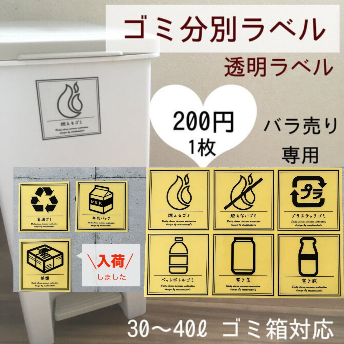 【ばら売り】ゴミ分別ラベル特大サイズイラスト入り透明PET